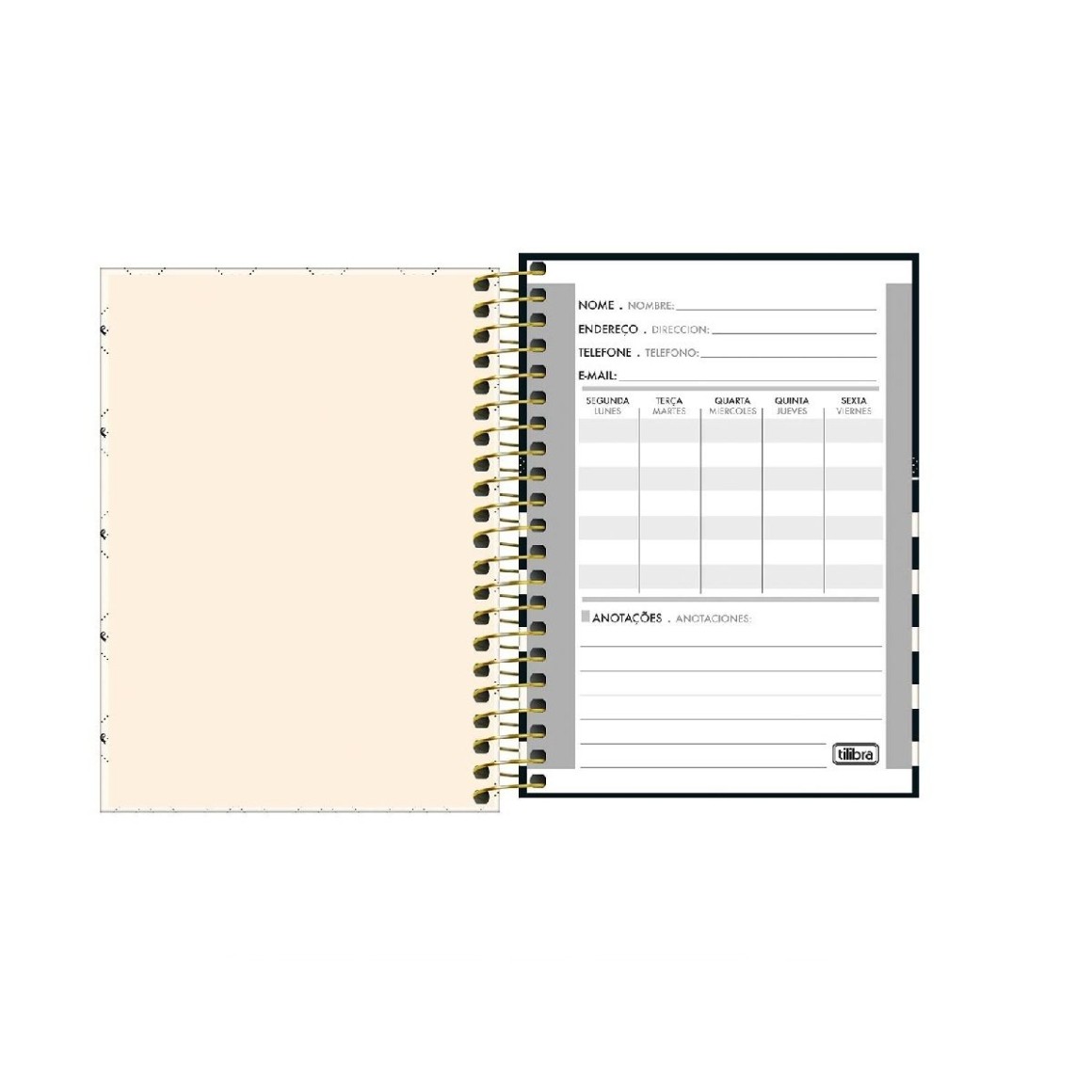 A Caderneta Espiral Capa Dura 1/8 West Village 80 Folhas possui capa dura com detalhe metalizado, parte interna decorada, folhas pautadas decoradas e espiral colorido. Ideal para o dia a dia.