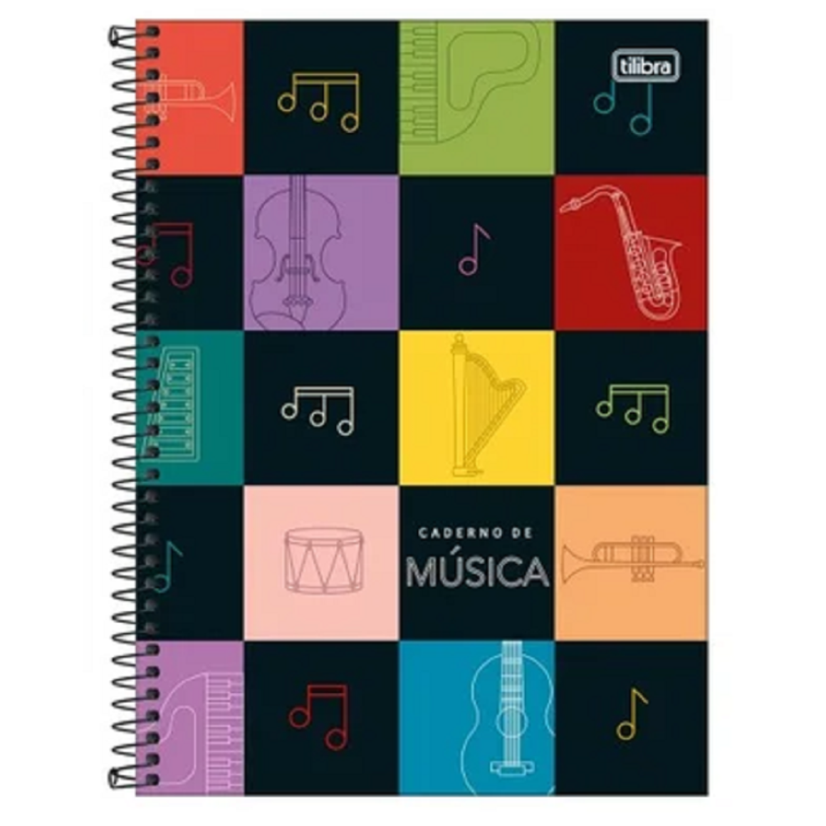 O Caderno de Música Espiral Capa Dura Universitário Tilibra 80 Folhas possui capa dura e folhas específicas para partituras. Ideal para atividades musicais.