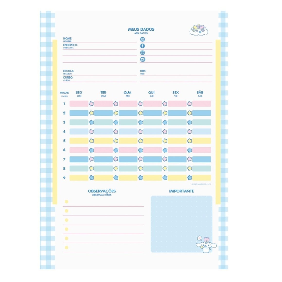 O Caderno Universitário Cinnamoroll possui capa dura, folhas pautadas e espiral. Ideal para o dia a dia na escola ou na faculdade.