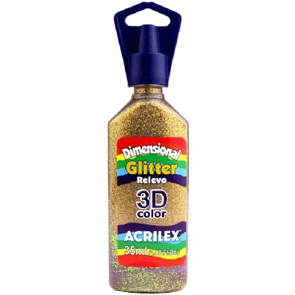 TINTA DIMENSIONAL GLITTER RELEVO 3D OURO 201 ACRILEX