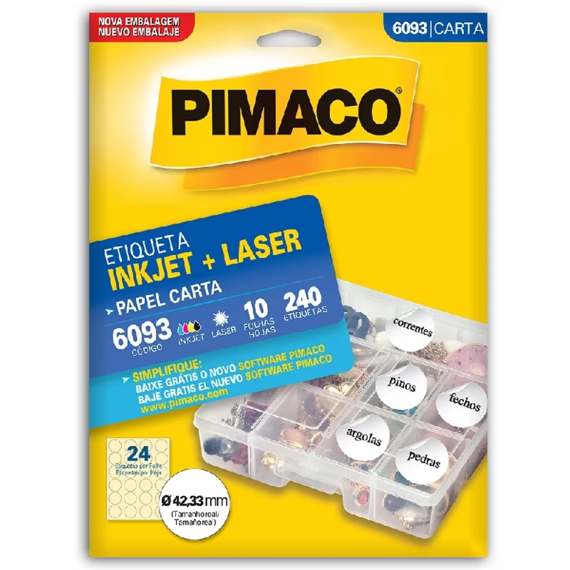 ETIQUETA 6093 10FLS 240 ETIQUETAS REDONDA PIMACO